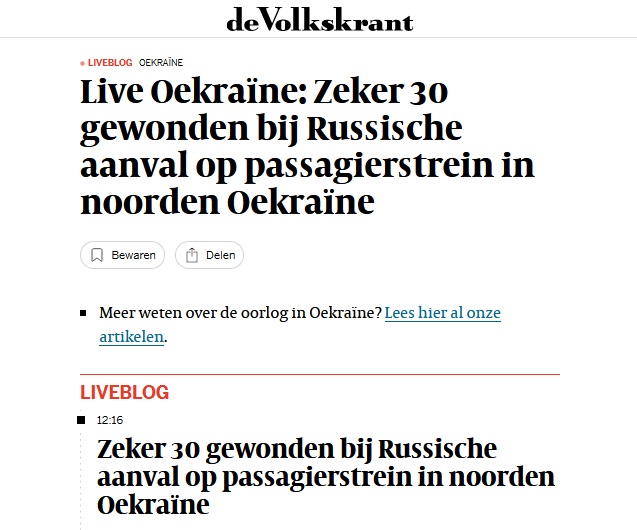 ... De Russen raakten een trein die onderweg was naar Kyiv.    ...