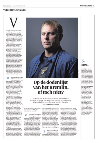 ...    In de eerste jaren van de grootschalige oorlog voerde Rusland amper politieke moorden uit op Oekraïens grondgebied dat het niet in handen had, maar de laatste maanden lijkt er sprake van een kentering. In 2025 telde ... tot dusver al 21 moorden of pogingen daartoe door pro-Russische milities. In de West-Oekraïense stad Lviv werd eind augustus bijvoorbeeld de voormalige voorzitter van het Oekraïense parlement, Andri Paroebi, doodgeschoten door een als bezorger vermomde man.    ...