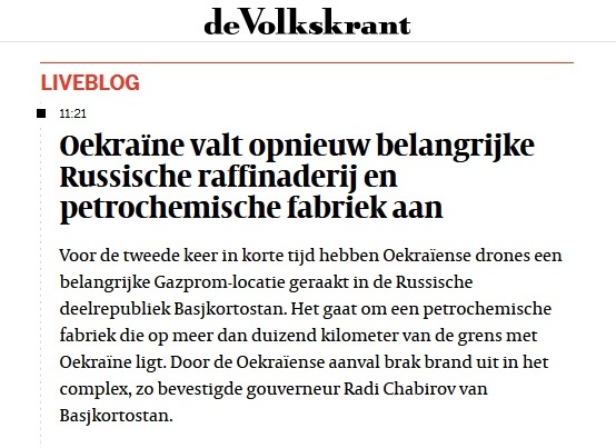 Het Oekraïense leger heeft in de nacht van dinsdag op woensdag een grote olieraffinaderij in Rusland gebombardeerd. De dagen ervoor voerde Oekraïne al 26 aanvallen uit op het Russische energienetwerk. Het doel: Russen komende maanden in de kou en het donker zetten.