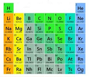 Die komen tezamen in de fijnstructuurconstante, die een waarde heeft (1/137 en nog wat) die er toe leidt dat er het lijstje van atomen mogelijk is dat bekend is als het periodieke systeem (in vereenvoudigde vorm):