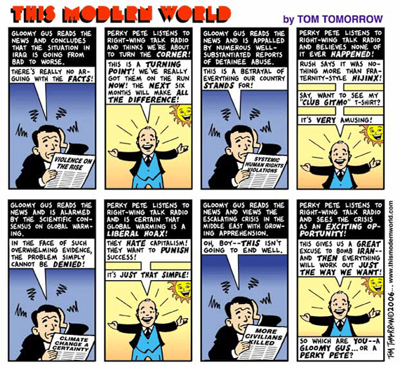 Onderstaand een cartoon, tonende een politicus en een wetenschapper. De