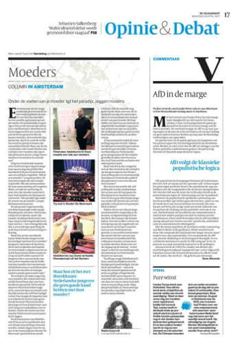 Dat 'Moeders' als kop was in de webversie (de Volkskrant, 24-04-2017, verslaggeverscolumn door Nadia Ezzeroili):