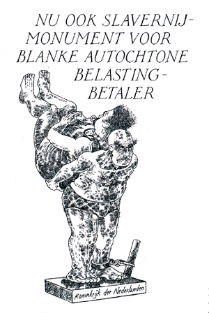 Als de eerste cartoon beledigend is voor een bevolkingsgroep, is de tweede dat minstens net zo erg. En de auteur van die tweede beledigende cartoon is zeker niet van zijn bed gehaald en gearresteerd, want deze cartoon is gemaakt voor en uitgegeven door de gemeente Amsterdam, en verspreid in lesmateriaal voor alle scholen. Waar belediging van moslims dus goed is voor arrestatie, wordt belediging van blanken gezien als aanbevelenswaardig. Het is volkomen duidelijk: de datum van de arrestatie van Gregorius Nekschot kan genoteerd worden in de geschiedenisboeken als de datum van het verdwijnen van de vrijheid, en van de invoering van de sharia.